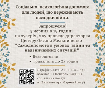 Парафія Святої Анни при взаємодії з Центром надання соціальних послуг Вишневої міської ради розпочинає серію активностей з соціально-психологічної підтримки людей,