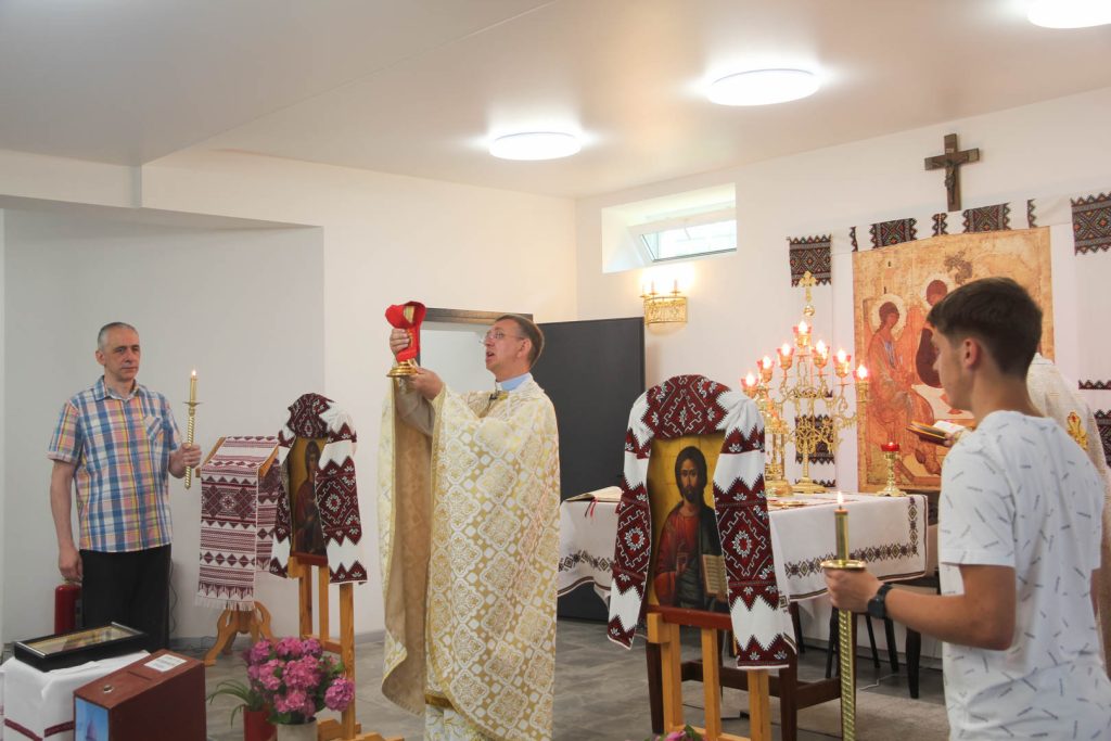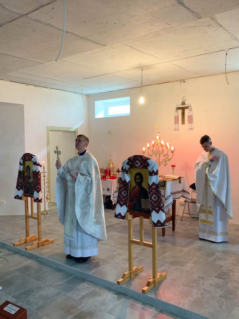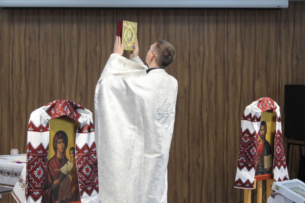 В неділю 30 квітня ми молились у нашому орендованому залі, поки у нашому нижньому храмі ведуться ремонтні роботи.