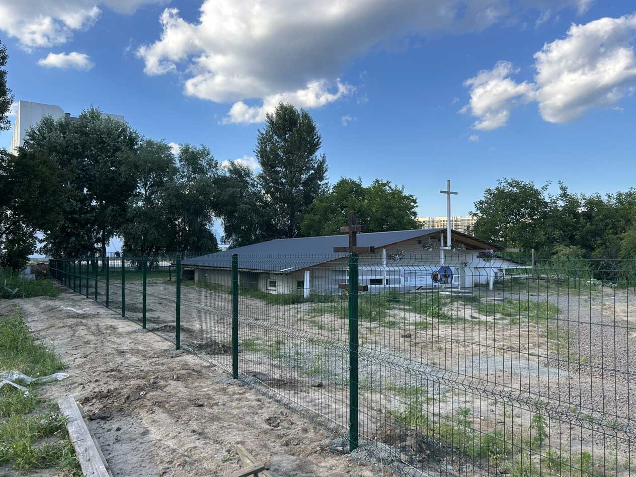 Завдяки вашим пожертвам, протягом травня-липня 2024 ми змогли встановити надійний паркан навколо церковної території (0,11 гектара), побудувати три входи та належним чином облаштувати прилеглу територію церкви.