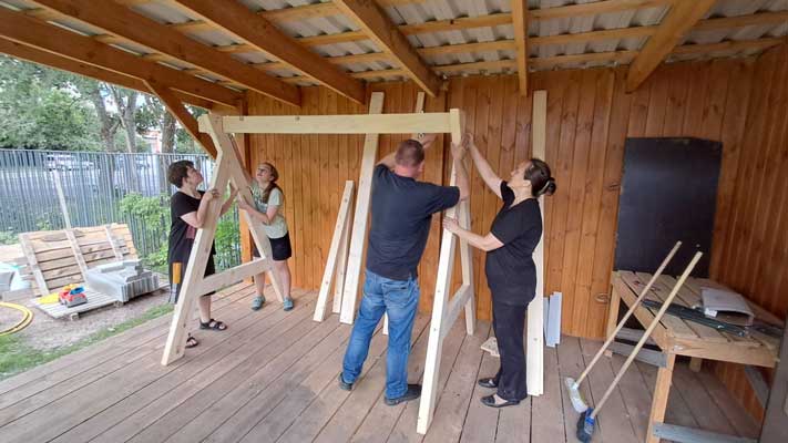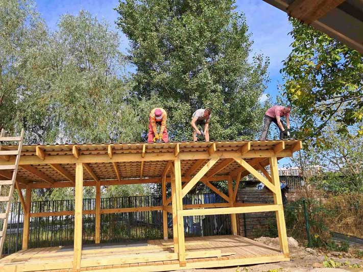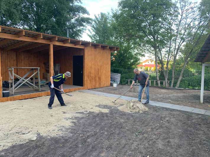 Зараз ми працюємо над створенням невеликої рекреаційної зони на огородженій території, встановлюючи літню альтанку та технічне приміщення. Будівельні роботи в цій зоні плануємо завершити в жовтні 2024.