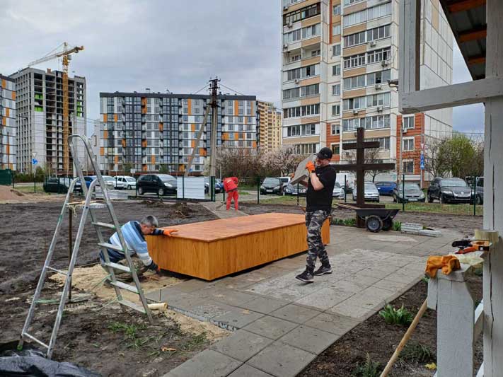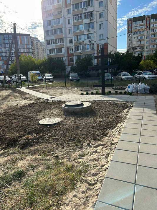 Крім того, були виконані роботи з вирівнювання земельної ділянки та водовідведення, щоб запобігти затопленню підвалу церкви.