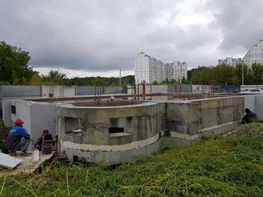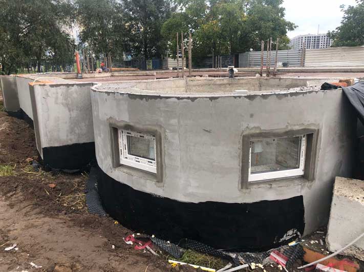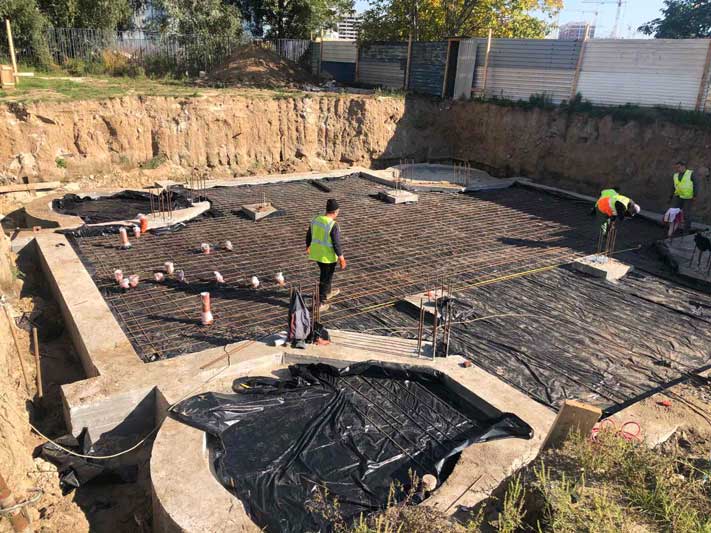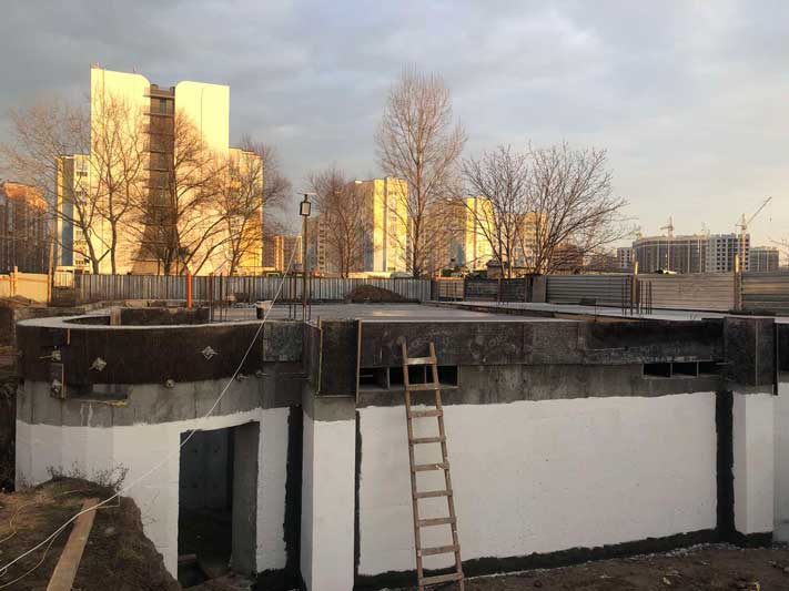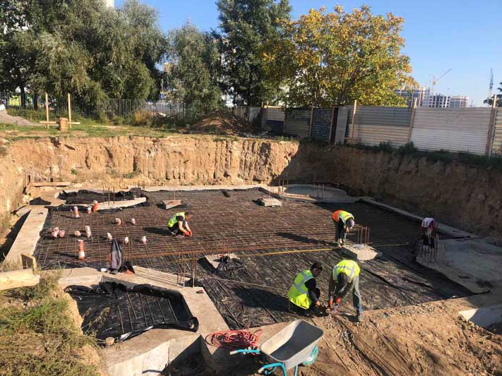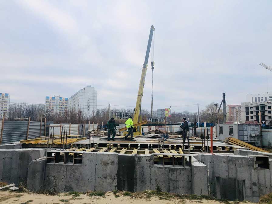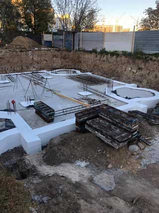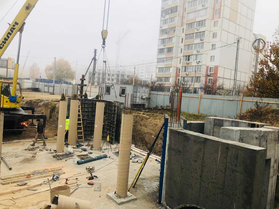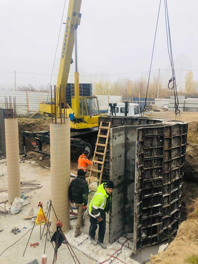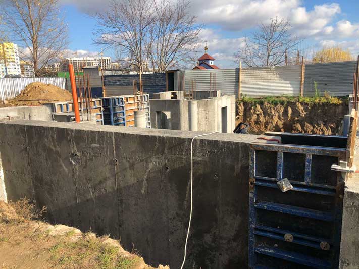 Раді повідомити, що минулого тижня підрядна організація завершила зведення 4 напівкруглих бетонних основ храму та розпочала зведення бокових монолітних стін з бетону.