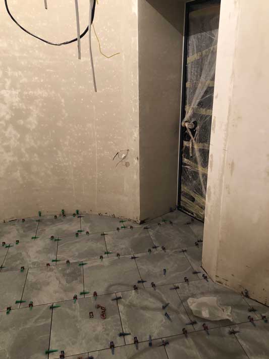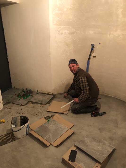 Робітники приступили до викладання плитки та монтування внутрішніх дверей