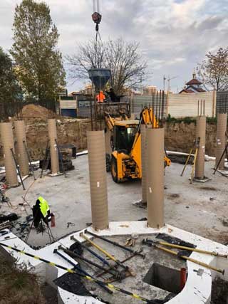 Раді повідомити, що наші робітники завершили заглиблення залізобетонних паль (60 шт.), які будуть служити надійною основою для будівництва майбутнього храму. З наступного тижня (після проведення динамічних випробувань паль) приступимо до виконання стрічкових фундаментів.