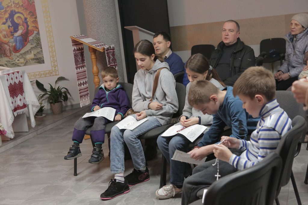 Після вступного слова діти розпочали молитву, провадячи десятки вервиці та зачитуючи розважання. Кожен долучився до спільного прохання до Пресвятої Богородиці — про мир, любов і захист для всіх дітей землі.