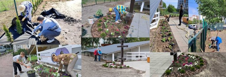 Дерева, квіти навколо храму admin August 20, 2025 9 вересня 2024 р. – 8 вересня 2025 р.Впродовж 2024-2025 рр. йшла праця над озелененням території. Висадка дерев, квітів.