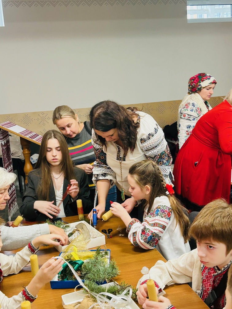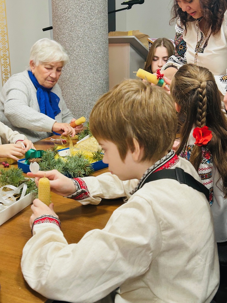 Дітям велику радість приніс майстер-клас із виготовлення та декорації Різдвяних свічок. Під час заняття до церковної зали було внесено дідух – традиційний український символ, що вносить у дім святковий дух.