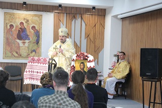 Під час проповіді, владика Андрій звернув увагу, що ми вже маємо досвід Христа воскреслого. Тому вже маємо також думати, як учні, які бачили Христа воскреслого. Розуміти, що він проповідував, розуміти те, чим він жив, розуміти те, який шлях він нам показував. «Він нам показував, що наш шлях не є шляхом самовивищення, але є шляхом служіння. Ісус Христос каже про те, що хоч я є ваш Господь і Бог, але все ж таки я беру на себе ваші гріхи. Він вчить нас не тільки словами, а реальними ділами, якими ми маємо бути, як ми маємо служити. Дуже часто ми не готові ще служити, бо служіння вимагає певних зусиль. Служіння вимагає того, що наше «Я» вже не є таке голосне. Наше «Я» принижується перед іншим «Я», але ми маємо йому послужити, бо так говорить Ісус», – наголосив Архиєрей.