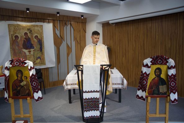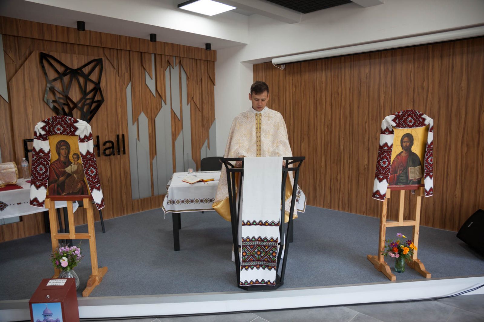 В неділю 30 квітня ми молились у нашому орендованому залі, поки у нашому нижньому храмі ведуться ремонтні роботи.