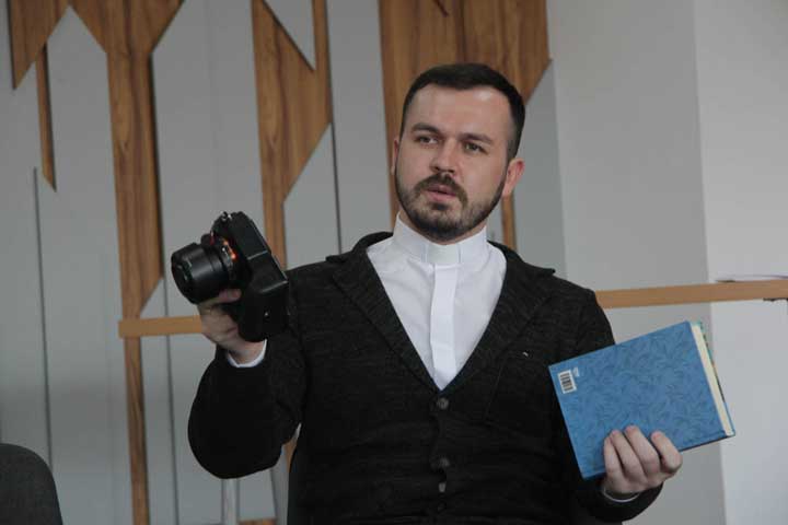Опісля отець Тарас розповів про професії: журналіста, PR-спеціаліста та блогера в чому їх відмінність та якими навиками потрібно володіти, щоб осягнути кожну з професій. «Кожен з вас щодня робить пости у соцмережах, виставляє фотографії й знімає короткі відео, проте професійна діяльність вимагає виконання певних обов’язків професійно стабільно кожного дня по вісім годин», – зазначив отець Тарас.