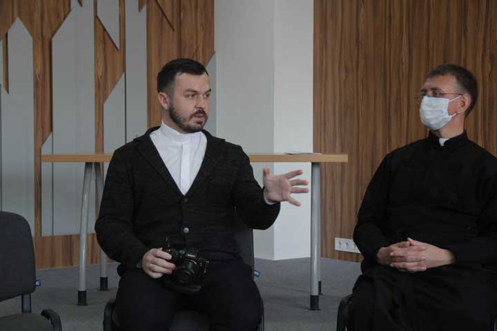На початку зустрічі отець Тарас розповів чому він вибрав служіння у сфері комунікації. Вже під час навчання у семінарії отець писав статті про події, які відбувались й на четвертому курсі став заступником головного редактора семінарійного часопису. «У вашому віці ви маєте певні прояви зацікавлення тим чи іншим способом праці: хтось любить більш творчу роботу, хтось математику, саме вони допоможуть вам визначитись із вашою майбутньою професією», – наголосив душпастир.
