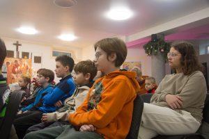 Продовжила зустріч пані Галина Болотенко, яка ознайомила всіх присутніх із традиційними різдвяними символами. Опісля отець Ярослав розповів про традицію ділення різдвяною просфорою та духовне значення свічки, яку запалюють під час Святвечора.